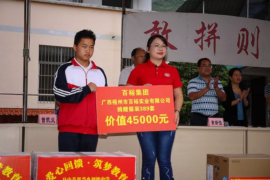 近日,由集團市場總監(jiān)曾凱蘭、河池分公司總經(jīng)理林志煌帶隊的百裕公益小組,分別深入馬山、巴馬地區(qū),為馬山里當初級中學、巴馬第五幼兒園的學生們捐贈衣物,表達企業(yè)的關(guān)懷。