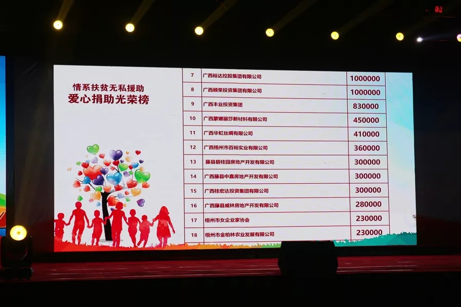 為進一步動員各民營企業(yè)、社會組織、社會各界愛心人士積極參與到扶貧攻堅的壯麗事業(yè)中來,形成“人人皆愿為、人人皆可為、人人皆能為”的社會扶貧參與機制,集中社會各方力量高質量打贏打好脫貧攻堅戰(zhàn),在10月17日我國第6個“扶貧日”來臨之際,10月16日晚梧州市2019年國家扶貧日“提高脫貧質量 鞏固脫貧成果”主題公益晚會上,百裕集團多年來積極助力脫貧攻堅戰(zhàn)役和社會公益活動工作成績顯著得到表彰。