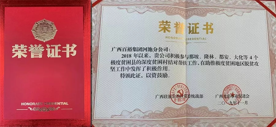 百裕集團河池分公司作為環(huán)江馴樂鄉(xiāng)鎮(zhèn)北村結(jié)對幫扶企業(yè),在扶貧攻堅工作中突出貢獻受到表揚。
