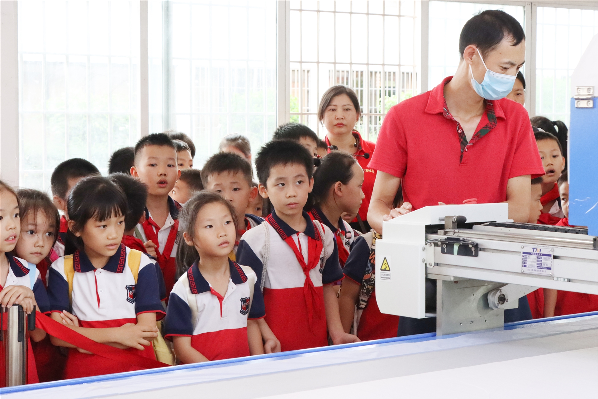 走進百裕服裝的生產(chǎn)車間,孩子們興奮的到處張望,寬大整潔的車間里擺放著一臺臺先進的生產(chǎn)設(shè)備,工人們正在制作生產(chǎn)。在講解員的引領(lǐng)下,帶著孩子們了解校服制作的流程和生產(chǎn)工藝,直觀的感受校服是如何生產(chǎn)的。