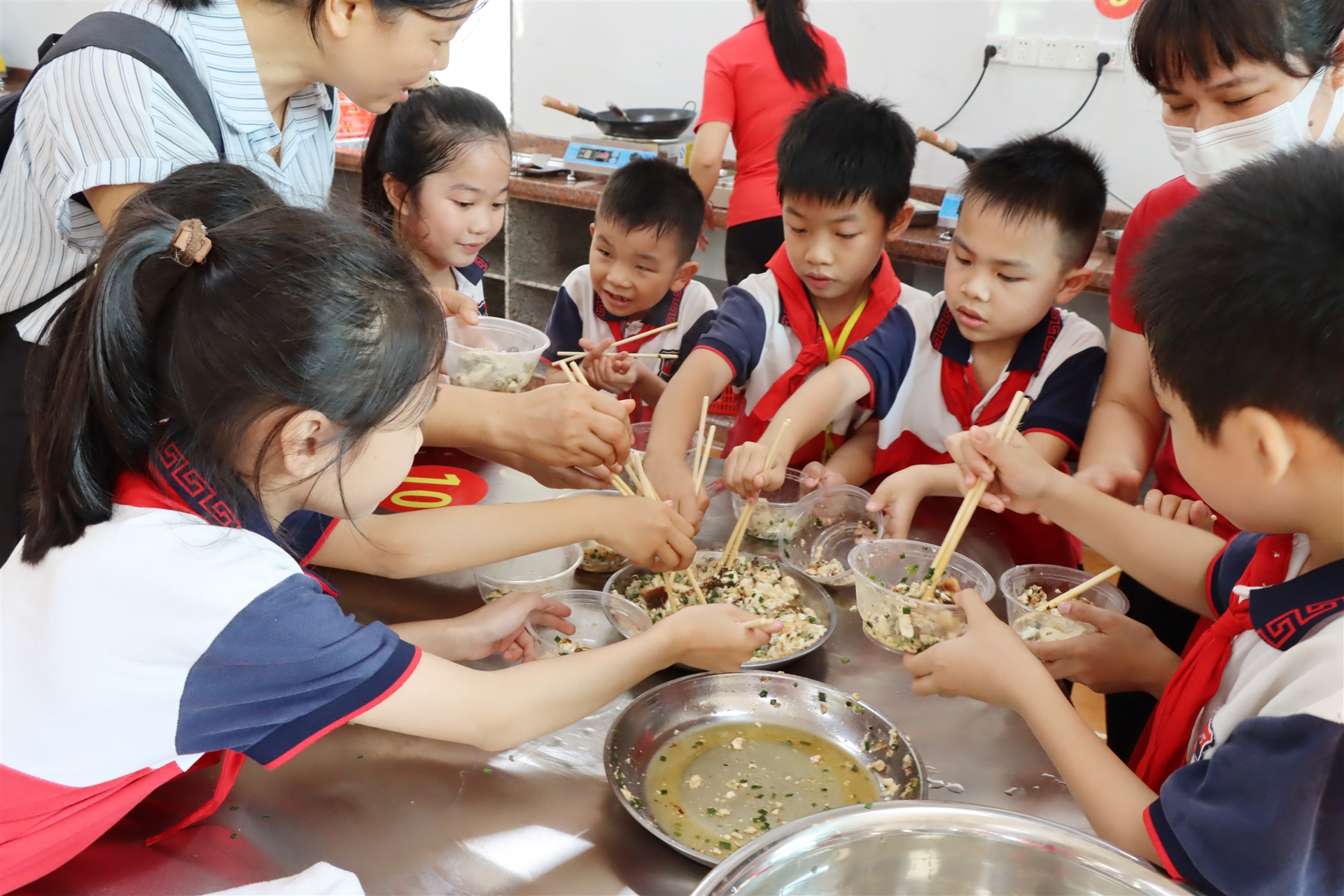 桌子上擺放著面粉、調(diào)好的餡料還有搟面杖,孩子們變身成了小小廚師,在家長的指導(dǎo)下迫不及待地制作餃子:他們拿起餃子皮,舀上餡料,小心翼翼地捏合......熱鬧的現(xiàn)場氛圍不時傳出陣陣歡笑聲。
