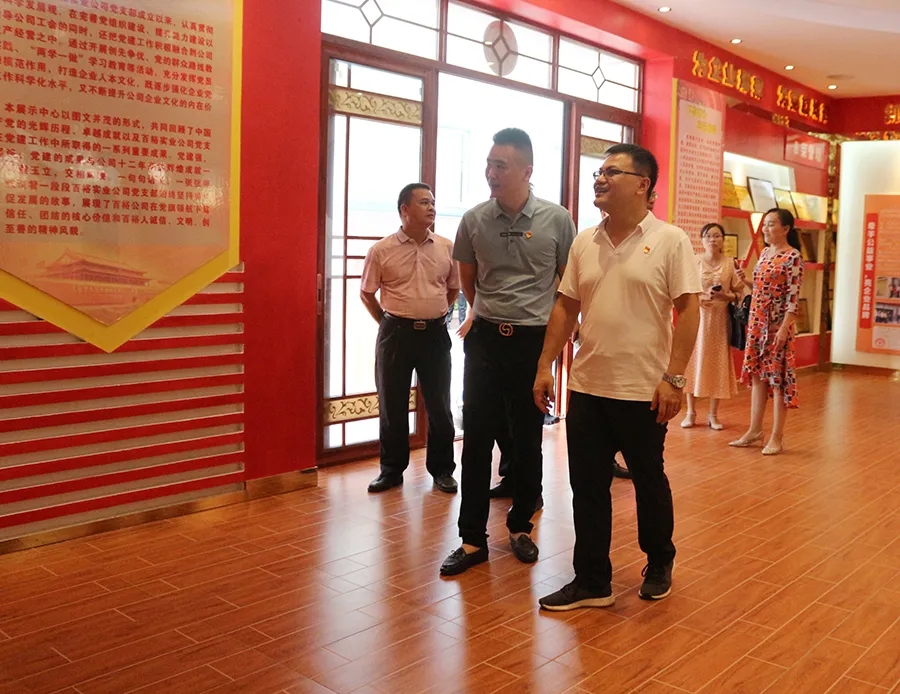 陸鵬處長一行參觀了學(xué)生裝文化展示中心、生產(chǎn)車間和百裕實(shí)業(yè)黨群服務(wù)中心,詳細(xì)了解了公司生產(chǎn)經(jīng)營發(fā)展情況,聽取了近年來加強(qiáng)黨建引領(lǐng)公司發(fā)展工作匯報(bào),并對進(jìn)一步加強(qiáng)黨員隊(duì)伍建設(shè),建好用好公司黨建陣地,充分發(fā)揮黨員先鋒模范帶頭作用,增強(qiáng)員工凝聚力、戰(zhàn)斗力促進(jìn)公司高質(zhì)量發(fā)展作具體指導(dǎo)。