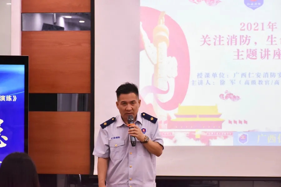 演練前,公司邀請(qǐng)廣西仁安消防安全教育中心徐教官為大家做了消防安全知識(shí)講座。