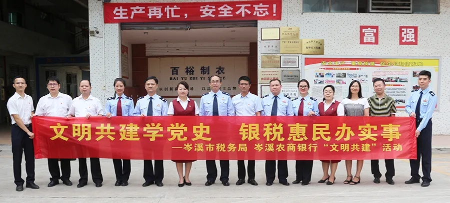 為充分發(fā)揮文明單位的示范輻射和帶動(dòng)作用,推動(dòng)全行黨員干部積極投身于學(xué)史踐初心,為民辦實(shí)事的主題活動(dòng)中,4月13日上午,全國文明單位岑溪農(nóng)商銀行聯(lián)合岑溪市稅務(wù)局共同舉辦“文明共建學(xué)黨史 銀稅惠民辦實(shí)事”系列活動(dòng),組織黨員干部通過觀看視頻、黨史分享、知識問答等形式,加深對黨史知識的認(rèn)識和理解,堅(jiān)定了共產(chǎn)主義信念,同時(shí)組織交流團(tuán)對百裕集團(tuán)生產(chǎn)中心進(jìn)行交流走訪,建言獻(xiàn)策。