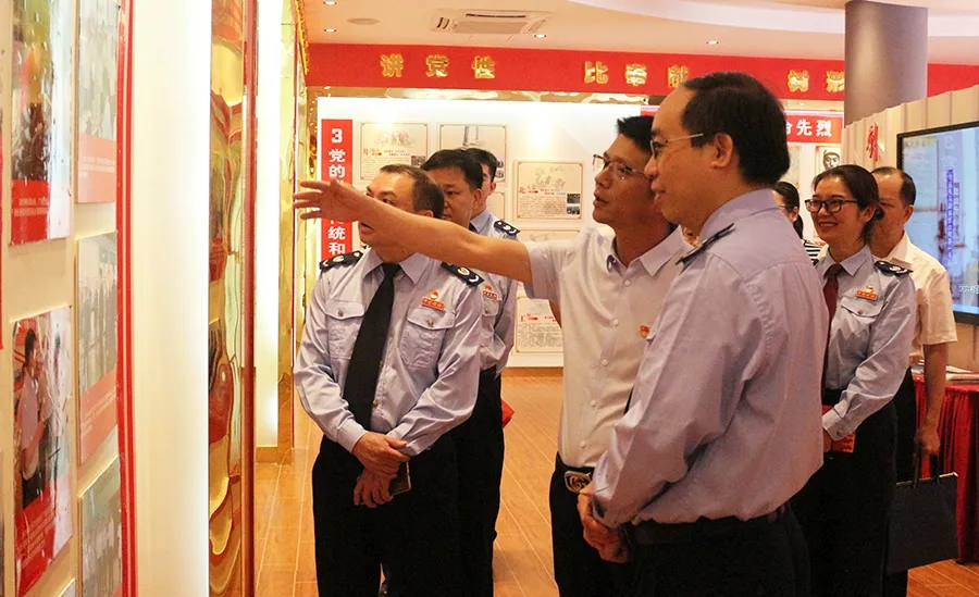 由稅務(wù)局黨組書記、局長陳懿帶隊(duì)的交流團(tuán)在百裕黨支部書記曾晏來的帶領(lǐng)下,參觀黨建中心、黨群活動(dòng)室,了解我公司黨建工作。