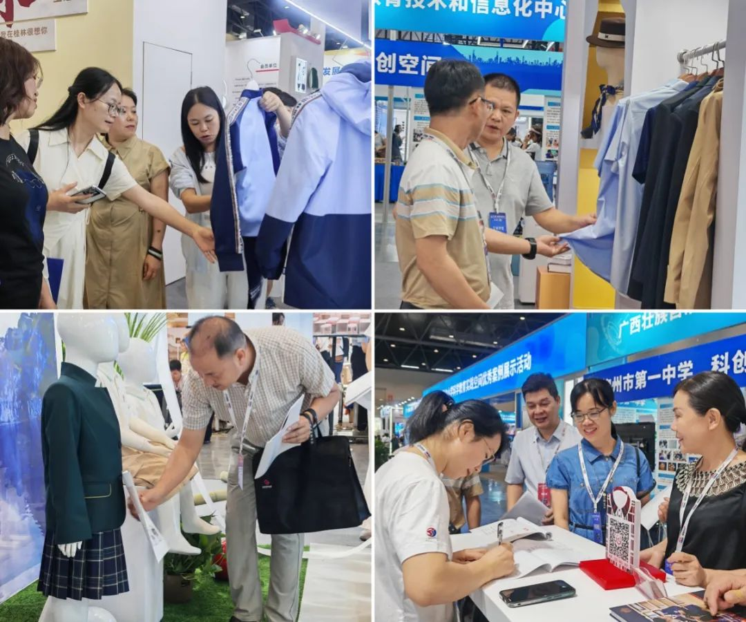 百裕集團(tuán)展位備受矚目,教育部關(guān)心下一代工作委員會(huì)常務(wù)副主任、中國(guó)教育裝備行業(yè)協(xié)會(huì)專家委員會(huì)主任王富,廣西貿(mào)促會(huì)黨組成員、副會(huì)長(zhǎng)、廣西國(guó)際商會(huì)副會(huì)長(zhǎng)劉樹義,自治區(qū)教育廳原二級(jí)巡視員、廣西民族教育發(fā)展基金會(huì)副理事長(zhǎng)陳標(biāo)智,廣西教育技術(shù)和信息化中心主任肖榮亮,廣西教育裝備行業(yè)協(xié)會(huì)創(chuàng)會(huì)會(huì)長(zhǎng)陳鐵華,廣西教育裝備行業(yè)協(xié)會(huì)代會(huì)長(zhǎng)貴尚明等領(lǐng)導(dǎo)嘉賓蒞臨展位指導(dǎo)。他們對(duì)百裕集團(tuán)將民族文化特色與現(xiàn)代校服設(shè)計(jì)理念相融合的創(chuàng)意實(shí)踐表示贊賞,充分認(rèn)可百裕集團(tuán)在推動(dòng)教育裝備高質(zhì)量發(fā)展所作出的積極貢獻(xiàn),領(lǐng)導(dǎo)及嘉賓暖心的關(guān)懷與指導(dǎo),是百裕集團(tuán)在未來(lái)的發(fā)展道路上的強(qiáng)勁動(dòng)力。
