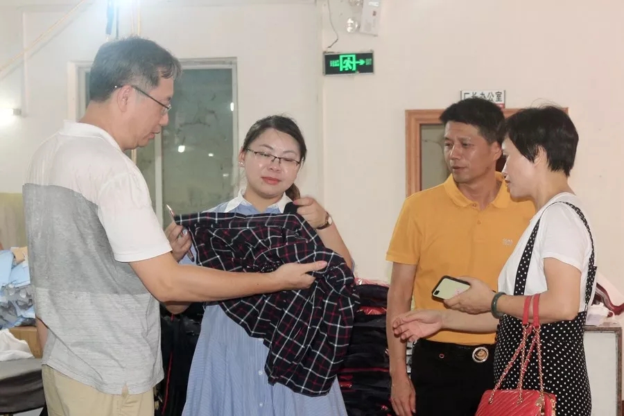 7月4日,南寧市新希望教育用品有限責(zé)任公司總經(jīng)理勞豪一行4人到百裕實業(yè)生產(chǎn)基地,了解學(xué)生裝庫存情況以及監(jiān)督產(chǎn)品質(zhì)量。百裕集團(tuán)董事長許曲煌、生產(chǎn)中心總經(jīng)理曾晏來等相關(guān)公司人員陪同考察。
