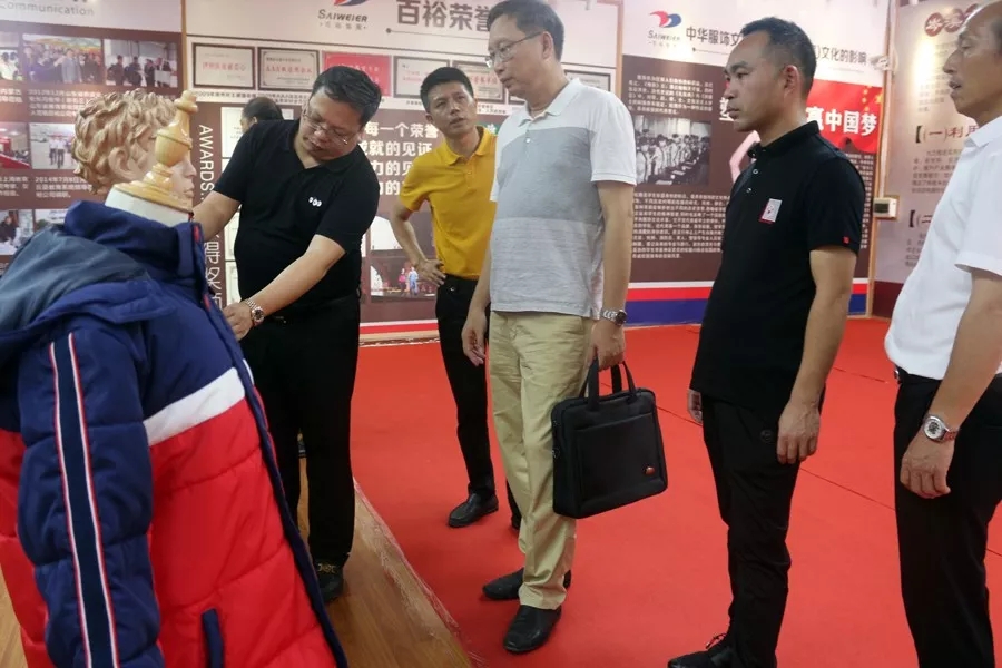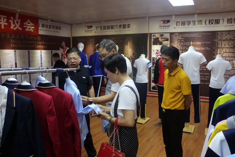 隨即新希望公司參觀了“全國學(xué)生裝文化展示中心”,對展示廳里面的各類型服裝進(jìn)行指導(dǎo)。并對百裕引進(jìn)的先進(jìn)的面料、輔料等表示認(rèn)可。