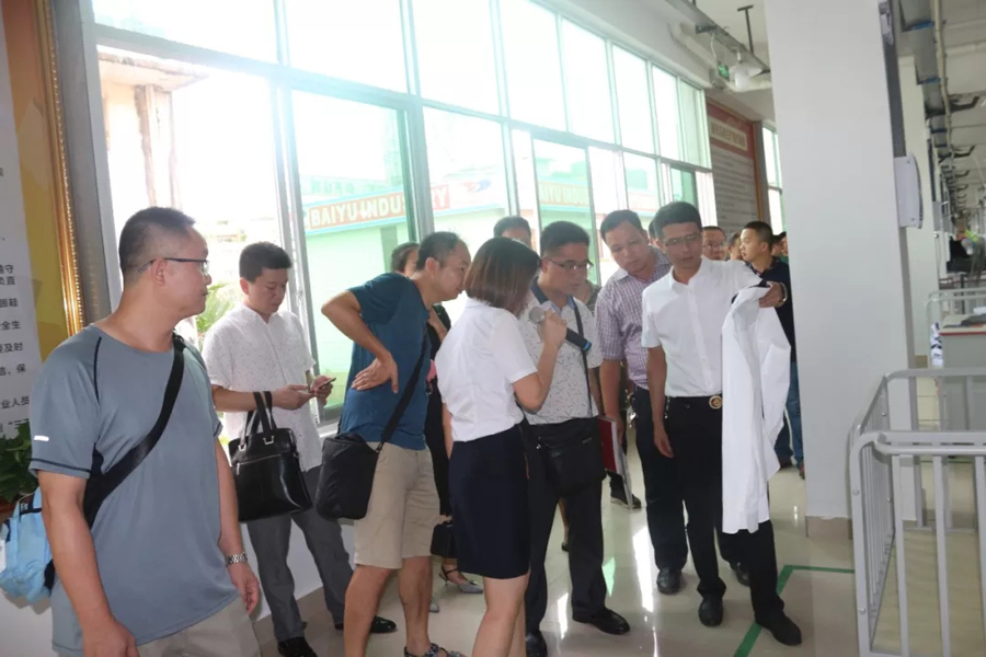 (董事長帶領(lǐng)各級領(lǐng)導(dǎo)參觀生產(chǎn)中心)