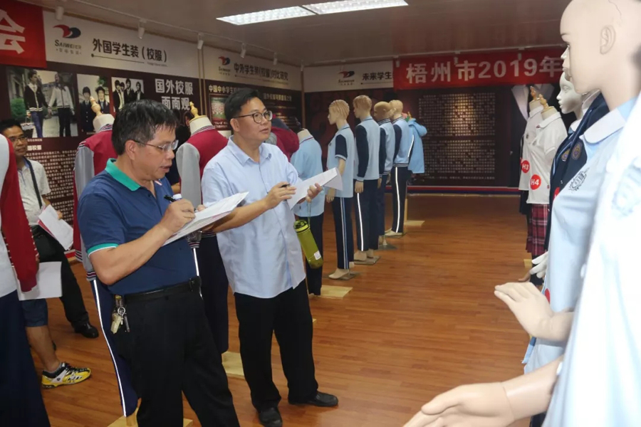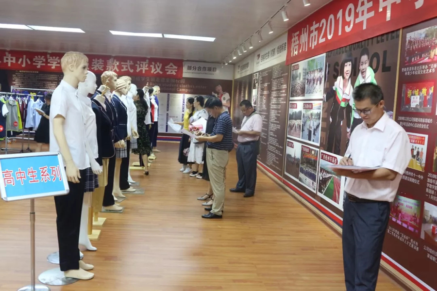交流會后,參會代表們一同參觀了百裕集團生產(chǎn)車間,同時對2019年梧州市中小學(xué)學(xué)生服裝款式進行評議。